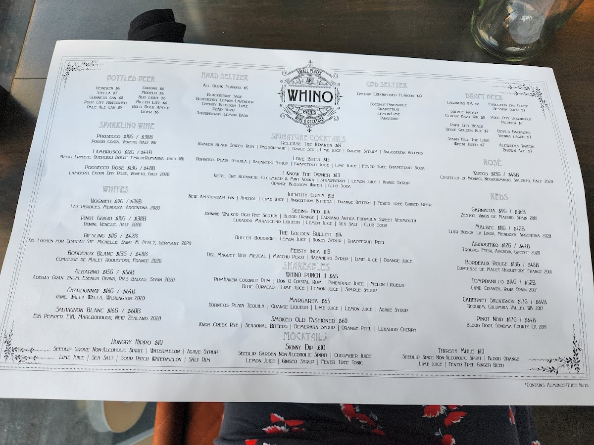 The Kitchen Needs dish reflects the creativity of the kitchen, often featuring seasonal ingredients in an innovative way. Finally, the Shareable Margarita is the perfect drink to accompany any dish, adding a zesty and refreshing touch to the meal. The menu at Whino Arlington is a delightful mix of comfort food, refined dishes, and exciting cocktails, all guaranteed to leave you satisfied and coming back for more.